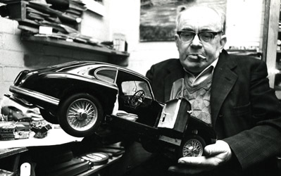 The Aston was a major undertaking. The monocoque body was made from hand beaten 22swg-aluminium alloy, which had to annealed frequently during the shaping. It was finished in a dazzling black cellulose as the original car. The wheels were Rudge-Whitworth triple-spoked. They were made on jigs and soft-soldered and sprayed white to match the full-sized Aston. They were shod with tyres made in Henri's workshop from home-made moulds which were heated on the indefatigable Tortoise stove. All the materials were as the original including the real ecru Connelly Hide leather seats. Henri's model was shown at the British Racing Drivers Club Exhibition at Green Park Piccadilly in 1962 to much aclaim.