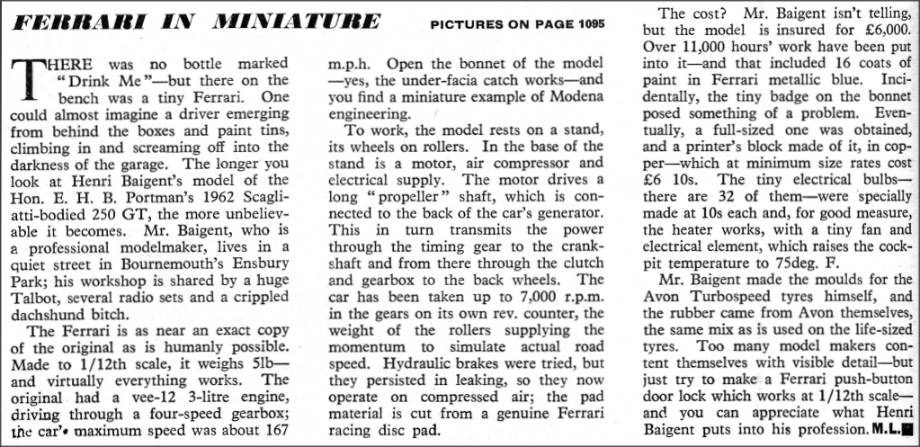 GT of one-twelfth scale which is almost as dear as the full-size Italian car.
