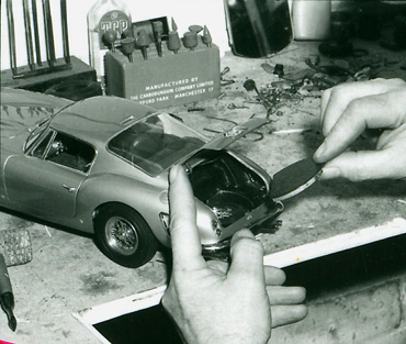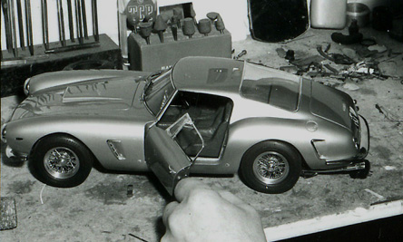 Henri working on the Ferrari when nearly finished, note the spare wheel in the open boot