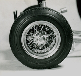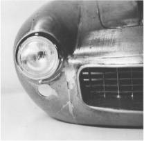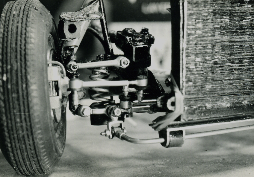 The body is hand-beaten in thin metal, though Baigent admits that the metal is thicker than scale. To be accurate in this respect would have meant a very fragile body, and the effect of clumsy hands picking up the model would have been equivalent to a nasty shunt in the real thing. Also, very thin metal wouldn’t have taken the exact shape so well. But most people couldn’t tell the difference without a micrometer; I know I couldn’t. All the doors and the trunk lid have scale-model working catches, the doors having a second catch to stop their flying open at speed. Door checks prevent them from slamming shut once they’re opened, and the trunk lid stays up of its own accord, giving access to the carpeted trunk and to the spare-wheel locker. The bumpers, air intake and head-lamp rims and door handles are all made from chromium plate, but chrome plating proved too brittle for the windscreen and window frames, so these were hand-beaten from solid silver. The windows were moulded by Baigent, as were the head-lamp lenses, which have the correct relief patterning on their front.