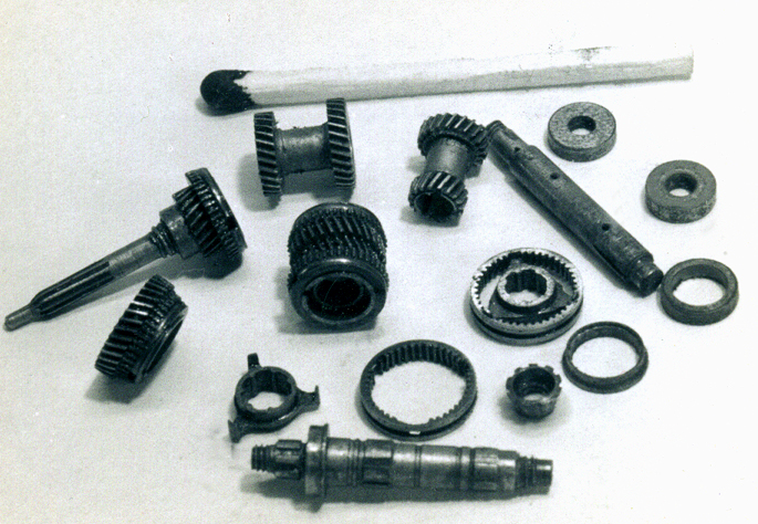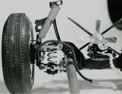 The clutch works, too, and the gearbox is enough to make you disbelieve your own eyes. Not only are all the wheels made to scale from the actual box, with working synchromesh on all forward speeds, but the selector mechanism is there, too, so that you can change gear by using the immaculate model gearshift. All the nuts and bolts on the box itself and on the inspection plates are to scale and workable—and the gear teeth are surface-hardened to minimize wear, just as they are on the real thing.