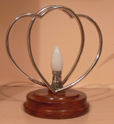 the silver hearts lamp with a temporary light installed