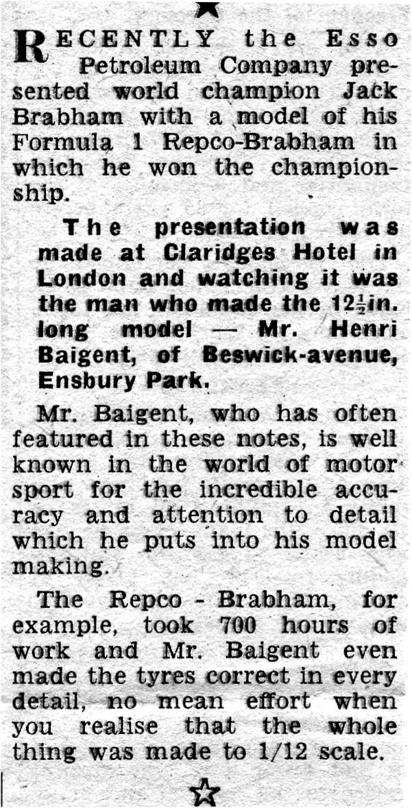 above, two pages of an article that appeared in Miniature Auto Jan 1967 click image to see full size