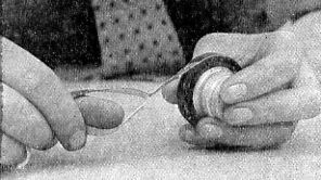 First cut a small thin strip of solder and push it into the circular cavity at the back of the hub. Do not put top much in. I use a thin sheet solder that you can buy in what appears to be tubular form, but it is actually only folded over; this I open out and cut strips off.. In the 2 ¼ in. wheels I use a strip approx. 1/16 in. wide and just long enough to make one ring. Now place hub on jig, which should be a fairly tight fit to ensure that it does not move during the spoking. If you find it is a little loose, a simple way of making it fit is to place three small pieces of thin paper equally spaced round the jig before pushing the rim on, then tear off surplus. Of course, if rims and jig have been made correctly this should not be necessary, but mistakes are easy to make and there is no reason why a rim should be rejected for the sake of a couple of thousanths of an inch