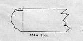 Form Tool for Hub.—This tool is quite a simple form, made from 1/4 in. plate filed to shape and. then hardened, getting the working tip red hot and quenching to prevent breaking under stress.