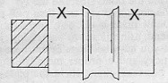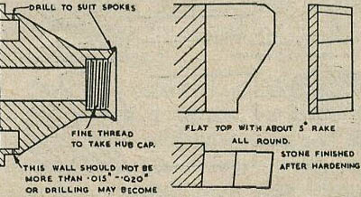 Tube cutter for recess in back of hub.—This is a piece of round mild steel, bored out to leave a wall of approx. 1/16 in., cut saw fashion, and then case-hardened. If silver steel is used the teeth are apt to break off.