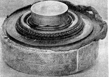 If the plates are now ready, place one piece of wood on the press face, then one hot plate, now mould and second plate on top of that, and finally the second piece of wood. Now shut the press and pile on as much pressure as you can. Take note of the time and leave the job for 20 minutes, and in this time the rubber melts and takes the form of mould, and then the pressure cures it, and if all has gone according to plan it should be a perfect tyre. The cord you have put in ensures that the tyre will not stretch by centrifugal force when in motion.