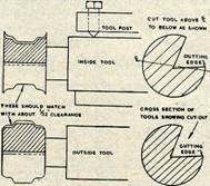 It's much easier to turn these tools to shape. You don't have to worry about undercuts or reliefs, and you can keep sharpening without losing shape. The two tools should match with about 1/32 in. clearance.
